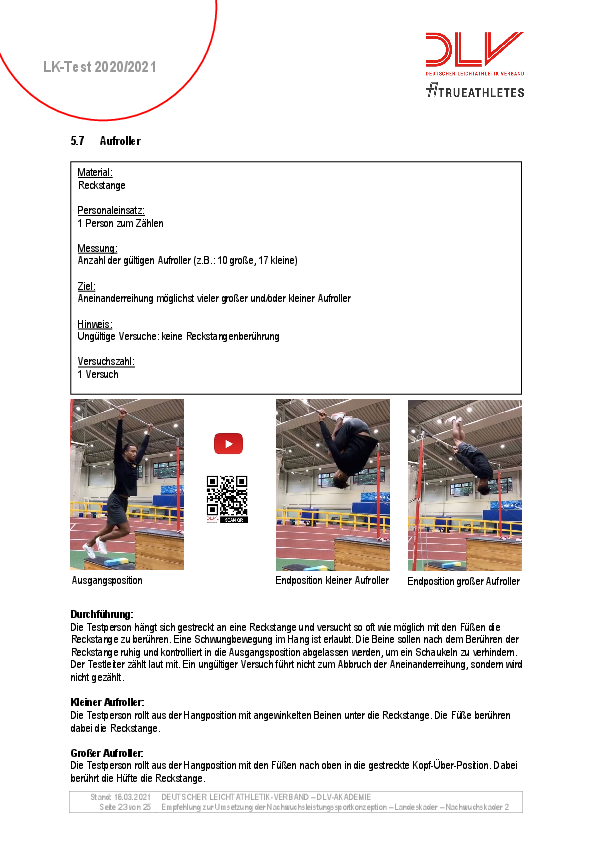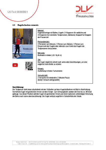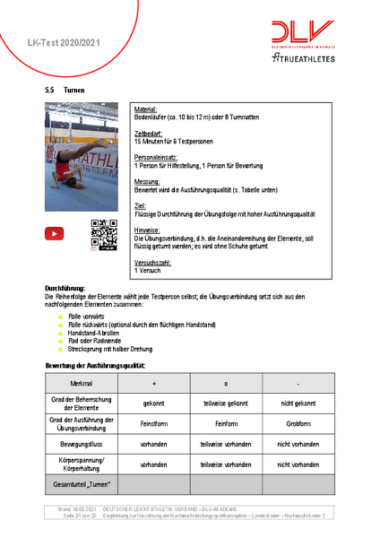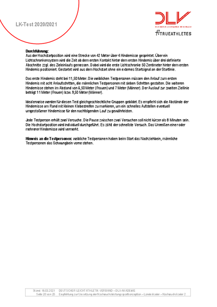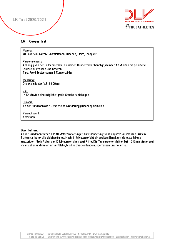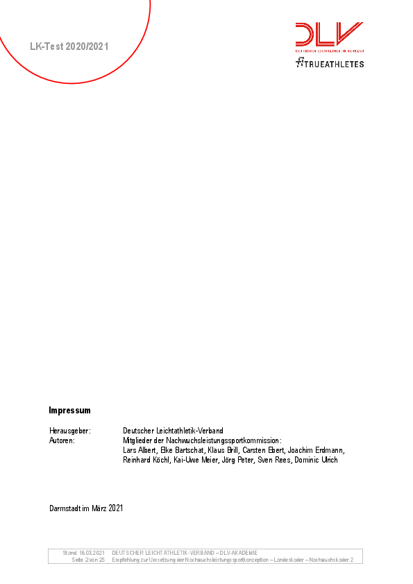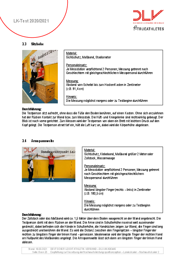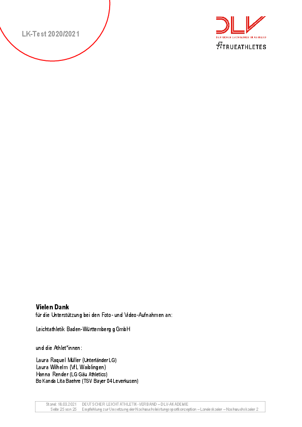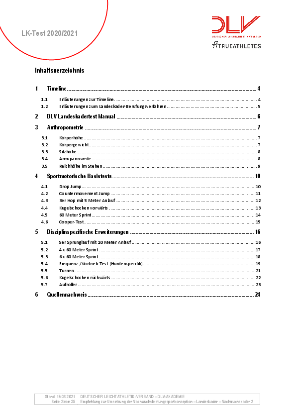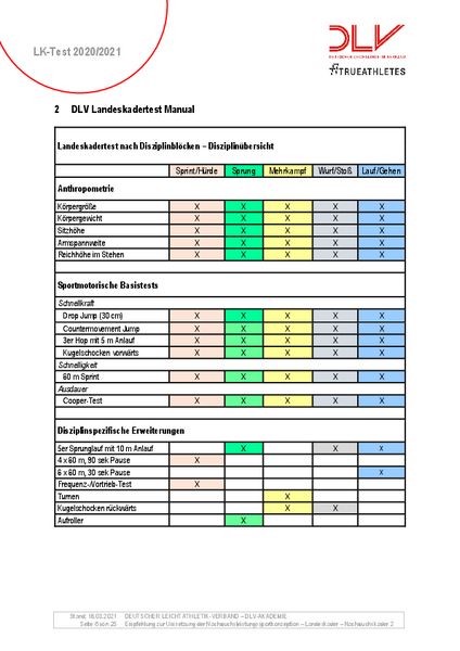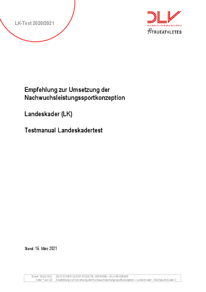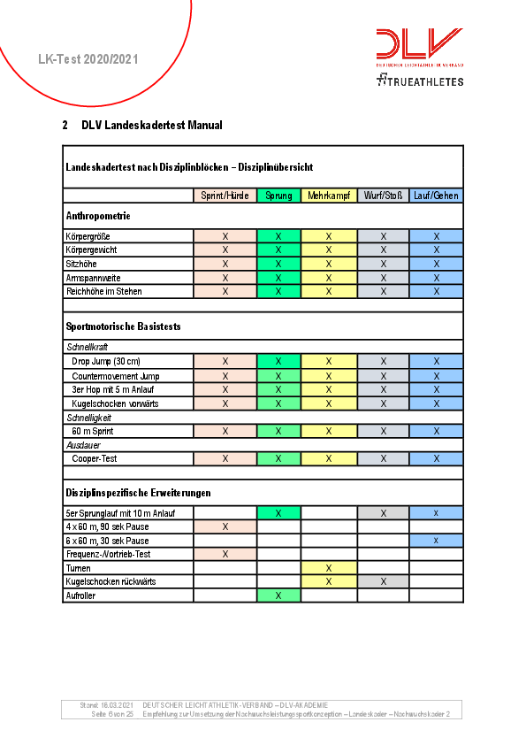 Für die Altersklassen 14/15 (Jg. 2011/2010) ist die Absolvierung des bundeseinheitlichen Landeskadertests Voraussetzung zur Landeskaderberufung: