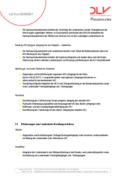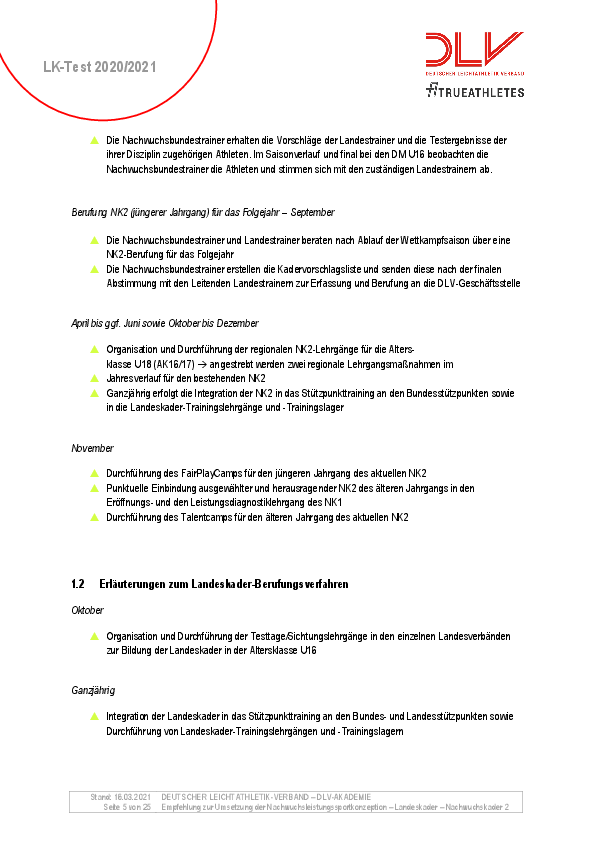 Die Berufung der Landeskader soll bundeseinheitlich möglichst gleichlautend und vergleichbar sein.
