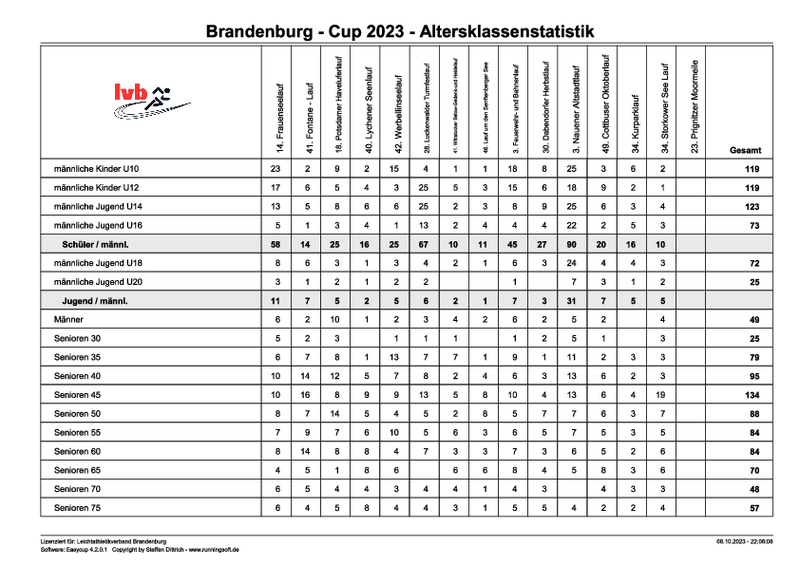 Auch im Jahr 2023 wird der Brandenburg Cup durch den Leichtathletik-Verband Brandenburg e.V. durchgeführt. In diesem Jahr geht er mit 15 Wertungsläufen an den Start.